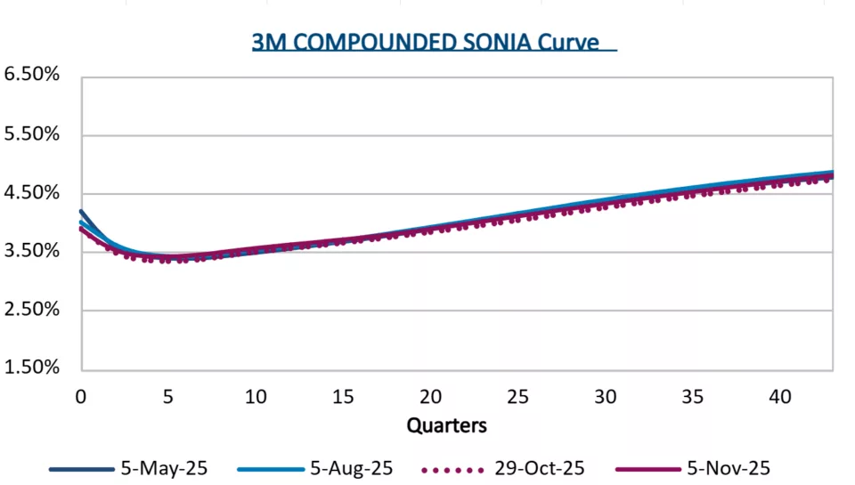 The BoE’s latest Monetary Policy Report highlights that inflation risks are now more evenly balanced. CPI, which peaked at 3.8% in September, is expected to ease to around 2.5% in 2026 and reach the 2.0% target by 2027. These projections assume market pricing for rates to decline toward 3.5% by mid-2026.