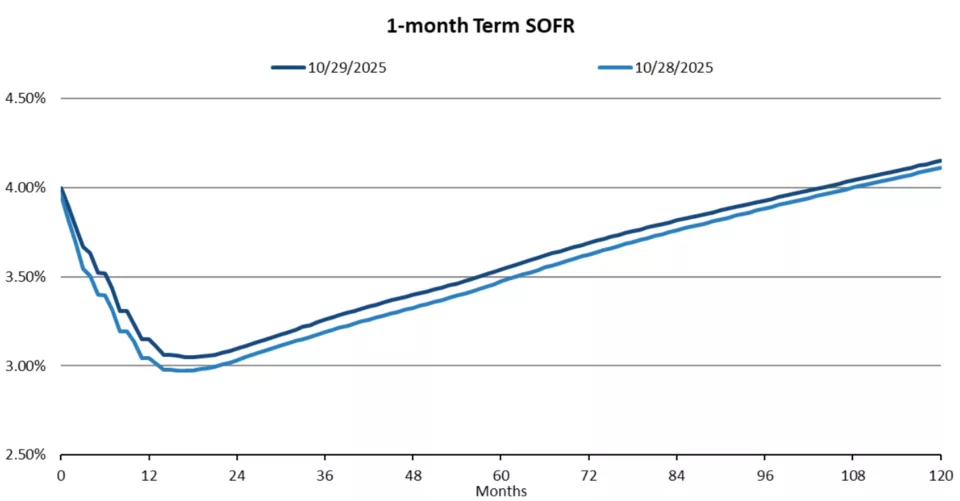 On Wednesday, October 29, 2025, the Federal Open Market Committee (FOMC) voted to cut the Federal Funds rate by 25 basis points (bps), to a target range of 3.75%-4.00%. This marks the second cut in 2025, following ongoing concerns about the weakening U.S. labor market and rising unemployment. In the midst of a government shutdown that is now approaching the 1-month mark, the FOMC cited “available indicators” in light of the delays in federal economic data releases. The Committee reaffirmed its dual mandate of promoting maximum employment and returning inflation to 2%. The statement released reiterated that job gains slowed this year, the unemployment rate edged up, all while inflation has slightly increased since earlier in the year and remains somewhat elevated. Newly appointed Fed Governor Stephen Miran dissented against the Committee’s decision for the second straight meeting, in favor of lowering rates by 50 basis points. Kansas City Fed President Jeff Schmid also dissented, but against a rate cut altogether. This is the first time we have seen dissents on each side of a decision since 2019. The Fed also announced that its balance sheet runoff will end on December 1, 2025. The Fed board will continue to monitor data to guide its decisions.