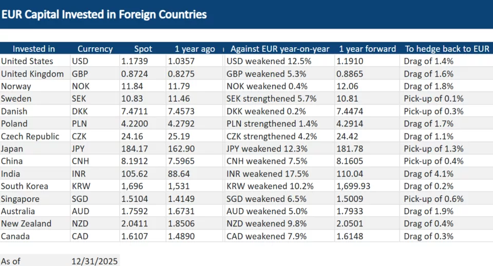 EUR capital invested in foreign countries